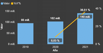 Tan solo en 2021, a esa región se enviaron más de 112 mil toneladas netas de productos valorados en 171,65 millones de dólares. Asimismo, en enero de 2022, las exportaciones se acercaron a los USD$ 30 millones FOB, con participaciones de 54,9% en el caso de Ucrania y 45,1% en el de Rusia, alcanzando variaciones de 908% y 77%, con respecto al mismo periodo de 2021.
